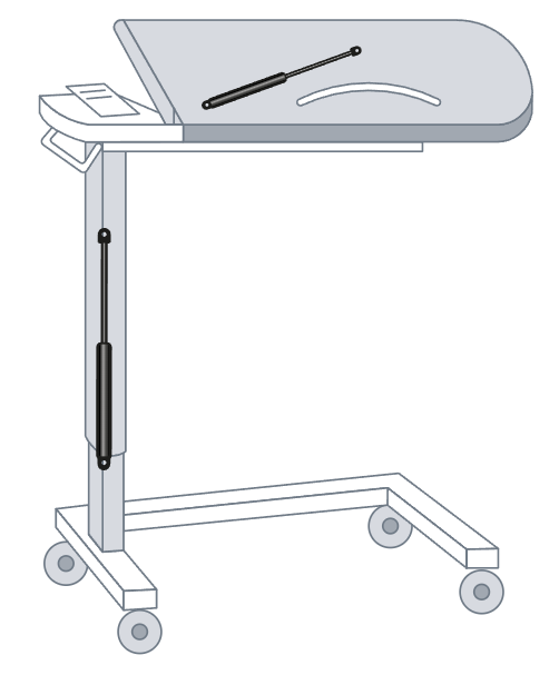 En entornos hospitalarios y de atención especializada, los pacientes a menudo disfrutan de sus comidas en la cama. Las mesas de noche equipadas con superficies desplegables que pueden rotarse sobre la cama son esenciales para este propósito. Nuestras gas springs aseguran que estas superficies puedan ajustarse fácilmente en altura, incluso cuando están muy cargadas, proporcionando comodidad y seguridad tanto para los pacientes como para los cuidadores.