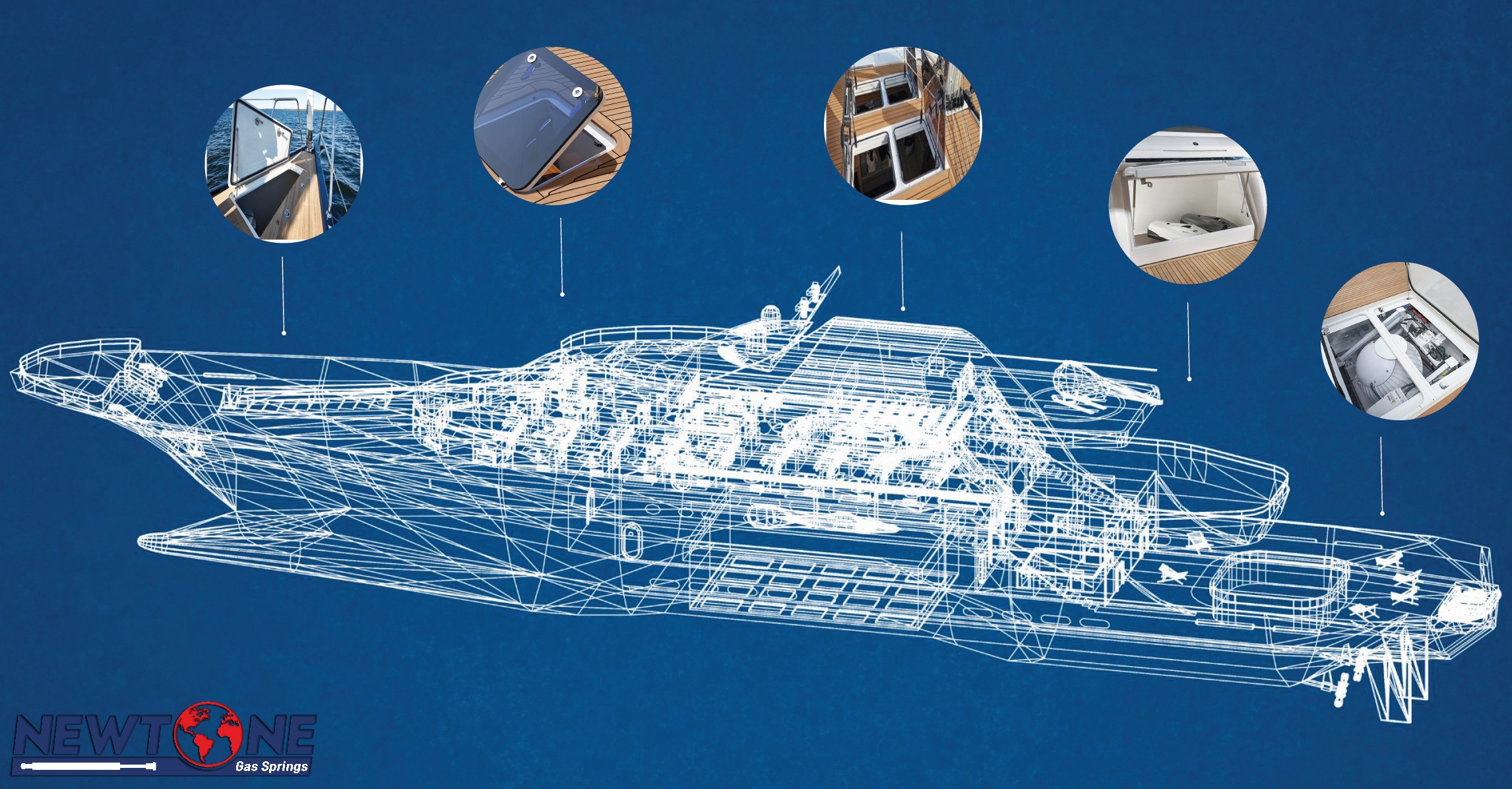 Alan verimliliğini maksimize etmek: Her gemi inşaatı ve yat yapım projesi, hem akıllı hem de yenilikçi yapısal çözümler gerektirir. Büyük, ağır paneller, güverte veya mürettebat geçiş kapakları, pencereler, geleneksel kapılar veya sürgülü kapılar olsun, hızlı ve güvenli açılma, güvenilir pozisyon tutma ve kusursuz kapanma sürekli bir ihtiyaçtır. Tüm bu uygulamalarda, Newtone gazlı amortisörleri ve kapı damperleri olağanüstü bir şekilde meydan okur.